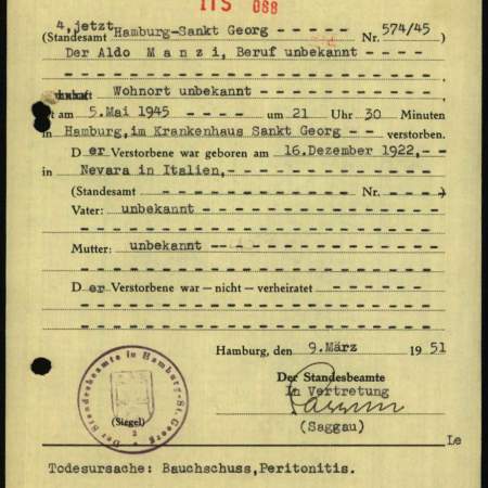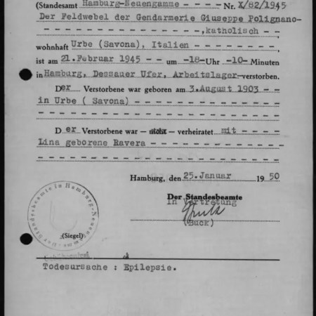 Ein weiterer Italiener, der in der NS-Zeit 1945 in Hamburg im Lager erschossen wurde
