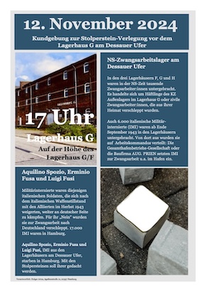 Stolperstein-Verlegung für drei italienische GHB-Arbeiter aus dem Hafen am 12. November 2024, 10 Uhr