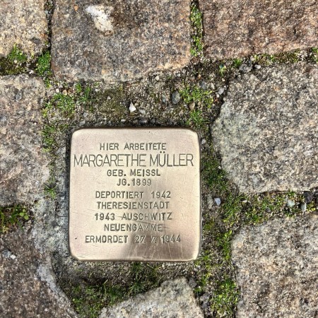 An Marketa Muellerova erinnert seit Jahren ein Stolperstein vor dem Lagerhaus G