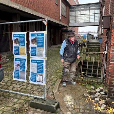 Die Plakaten zur Stolperstein-Verlegung am 12. November vor dem Lagerhaus G
