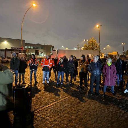 50 Teilnehmende auf der abendlichen Kundgebung vor dem Lagerhaus G am 12. November 2024