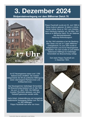 Stolperstein-Verlegung vor dem Billhorner Deich 76 für Filippo Faustinelli am 3. Dezember 2024
