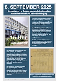 Comunicato stampa: 8 settembre 2025, ore 15, davanti alla “Stadtreinigung” Bullerdeich 19 ad Amburgo – Ricordo degli internati militari italiani