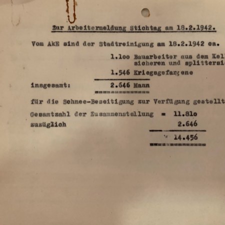 Über den Einsatz französischer Kriegsgefangener zur Straßenreinigung und Schneebeseitigung 1942