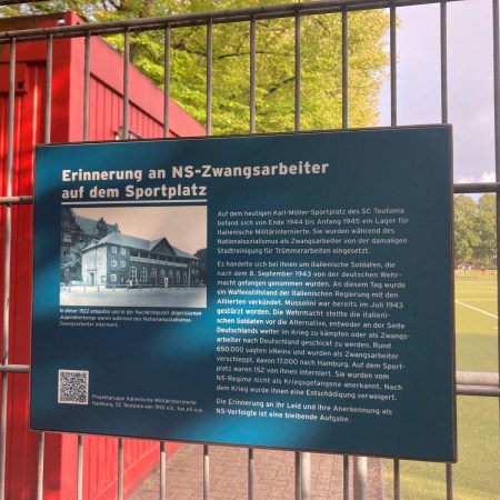 Über die Erinnerungstafel am Sportplatz an der Max-Brauer-Allee