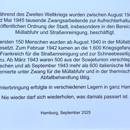 Presse-Info: 8. September 2025, 15 Uhr, vor der Stadtreinigung Bullerdeich 19 – Erinnerung an NS-Zwangsabeiter bei der Stadtreinigung 1940 -1945