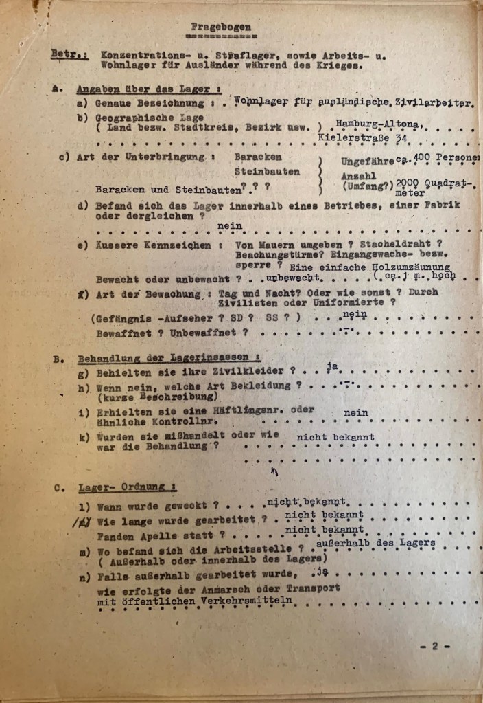 Hier war ein Baracken-Lager für rund 400 Personen, dass umzäunt war. Aus Unterlagen ergibt sich, das es sich um ein so genanntes „DAF-Lager“ handelt. Aus den Hausmeldekarteien der Schützenpforte 11 sind 34 und aus der Schilleroper sind bisher 121 Namen italienischer Militärinternierter bekannt. Die Zwangsarbeiter wurden u.a. für folgende Unternehmen gezwungen, zu arbeiten.