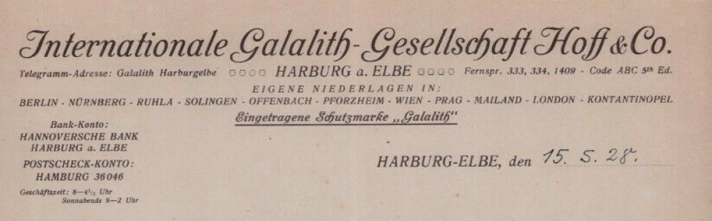 In der NS-Zeit setzte die Internationale Galalithgesellschaft in der Harburger Seehafenstraße 16 nach neuesten Unterlagen über 300 Zwangsarbeiter in ihrer Munitionsproduktion ein. Zum 1. April 1945 waren in dem Harburger Unternehmen insgesamt 615 Arbeiter beschäftigt, die Hälfte von ihnen waren Zwangsarbeiter. 179 kamen aus Frankreich, 74 aus Kroatien, Russen und Holländer sowie 26 italienische Militärinternierte.
