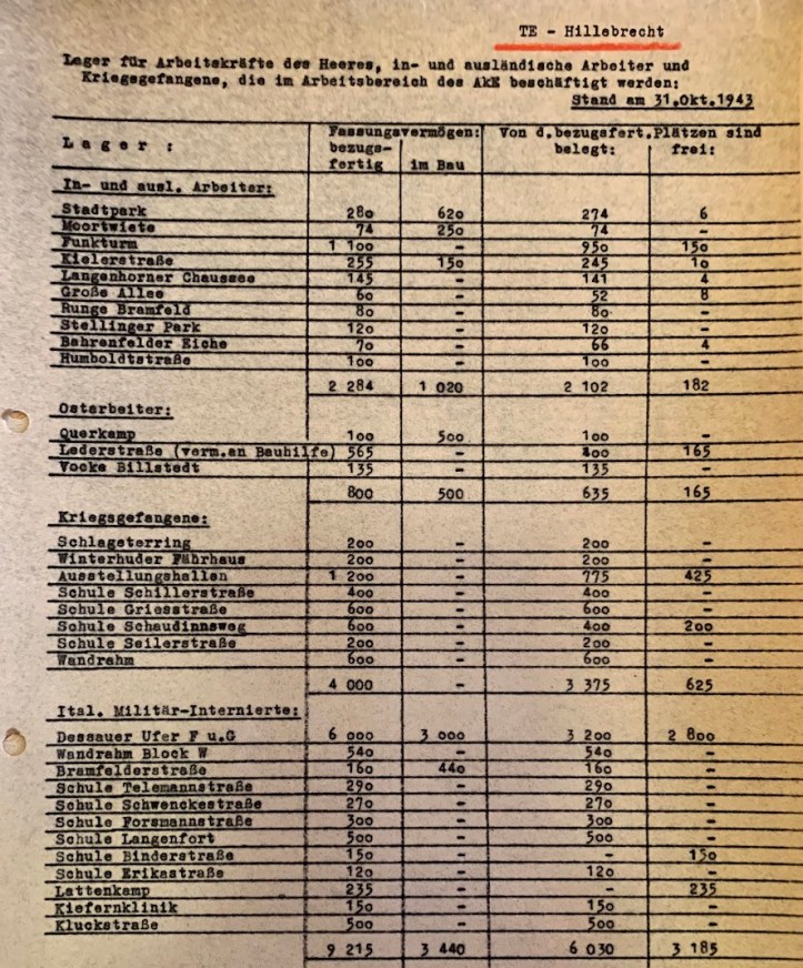 Già nel settembre 1943, quando furono fatti i primi piani per ospitare i 25.000 internati militari italiani annunciati dal leader della NSDAP di Amburgo Kaufmann, lo stabilimento balneare di Lattenkamp era uno dei campi di lavoro forzato, insieme alle grandi strutture di accoglienza di massa sul Dessauer Ufer. Alla fine di ottobre 1943, 235 alloggi erano stati allestiti negli edifici esistenti dei bagni.