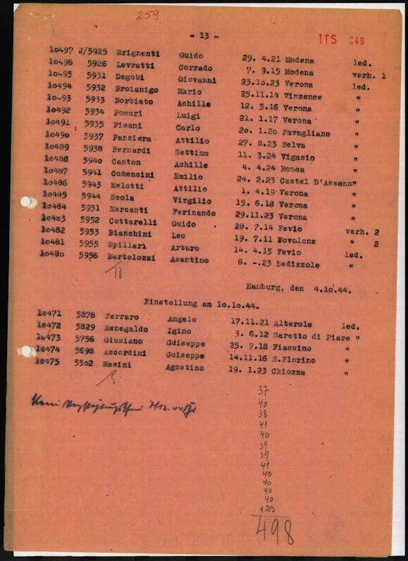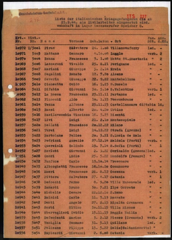 Fu uno dei 15.000 internati militari italiani che furono sfruttati come lavoratori forzati in oltre 600 aziende di Amburgo. In totale, Hitler diede a 650.000 soldati italiani lo status di internati militari italiani. Dopo la fine del governo fascista di Mussolini nell’estate del 1943, il nuovo governo negoziò con gli Alleati. L’8 settembre 1943, entrambe le parti annunciarono un armistizio. Questo „tradimento“ agli occhi di Hitler portò al disarmo dei soldati italiani. In Germania furono chiamati „traditori“ e „badoglio“. Il loro trattamento nei campi e nei lavori forzati in Germania fu pessimo. 60.000 IMI persero la vita durante questo periodo.