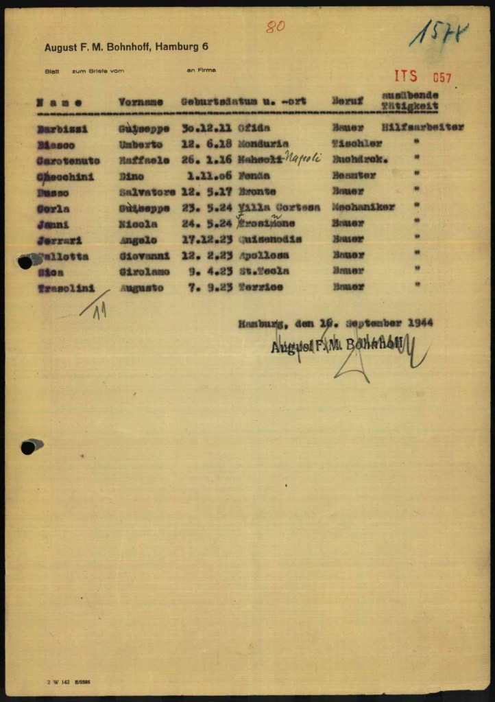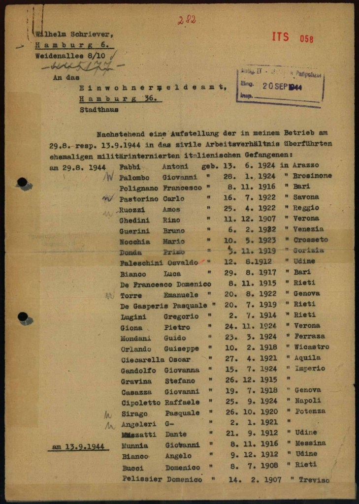 Il 1° settembre 1944 la sorveglianza degli IMI cambiò: la Wehrmacht tedesca non ne era più responsabile. Le aziende volevano ottenere più potere da loro. Nel dicembre 1943, quasi tutti gli imprenditori di Amburgo erano ancora favorevoli all’organizzazione della sorveglianza degli IMI e al controllo dell’impiego della manodopera da parte della Wehrmacht. Secondo loro, l’esercitazione militare era proprio la cosa giusta per i „traditori“ italiani. Le aziende ora se ne occupavano da sole. Coloro che non si presentavano al lavoro venivano denunciati alla Gestapo o, se non erano d’accordo con le loro prestazioni e il loro comportamento, venivano inviati al campo di addestramento al lavoro di Langer Morgen (AEL) per 50 giorni. Le condizioni erano simili a quelle di un campo di concentramento.