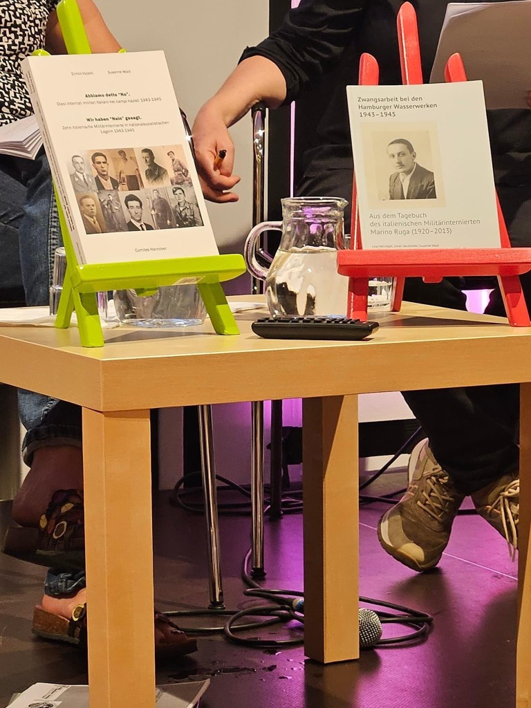 Gianni Ruga erzählte etwas zur Entstehungsgeschichte des Tagebuchs seines Vater, Marino und lass aus dem Buch vor. Susanne Wald sprach über die das von ihr mit erstellte Buch von zehn Erzählungen von IMI, die die persönlich besucht und aufgeschrieben hatte.