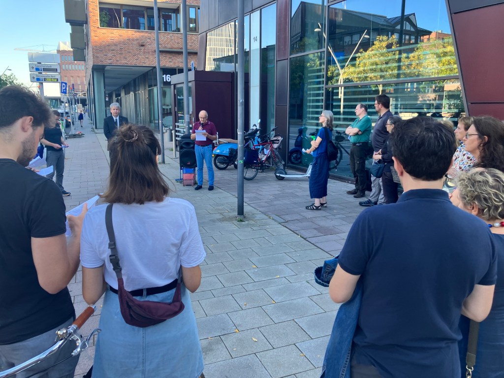 Auf der Kundgebung vor dem ehemaligen Stammsitz von Strom- und Hafenbau zur Erinnerung an die italienischen Militärinternierter am Hafenamt haben heute 40 Personen teilgenommen. Gesprochen haben Gianni Ruga, Jan Rübke, Maria Grazia Alemanno, Daniel Jahn (HPA) und Lars Stubbe (ver.di).