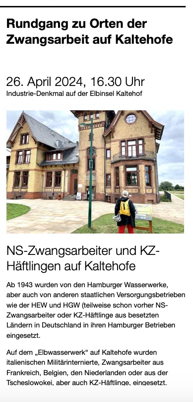 Memoriale industriale sull’isola dell’Elba a Kaltehof – visita ai siti del lavoro forzato nazista a Kaltehofe,