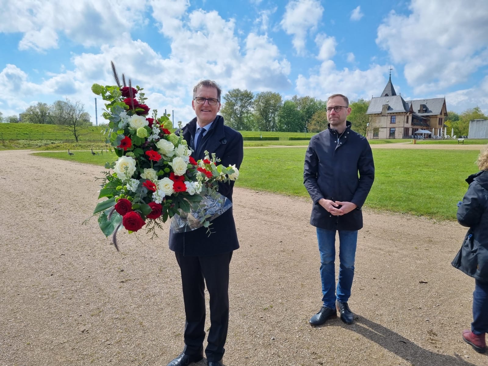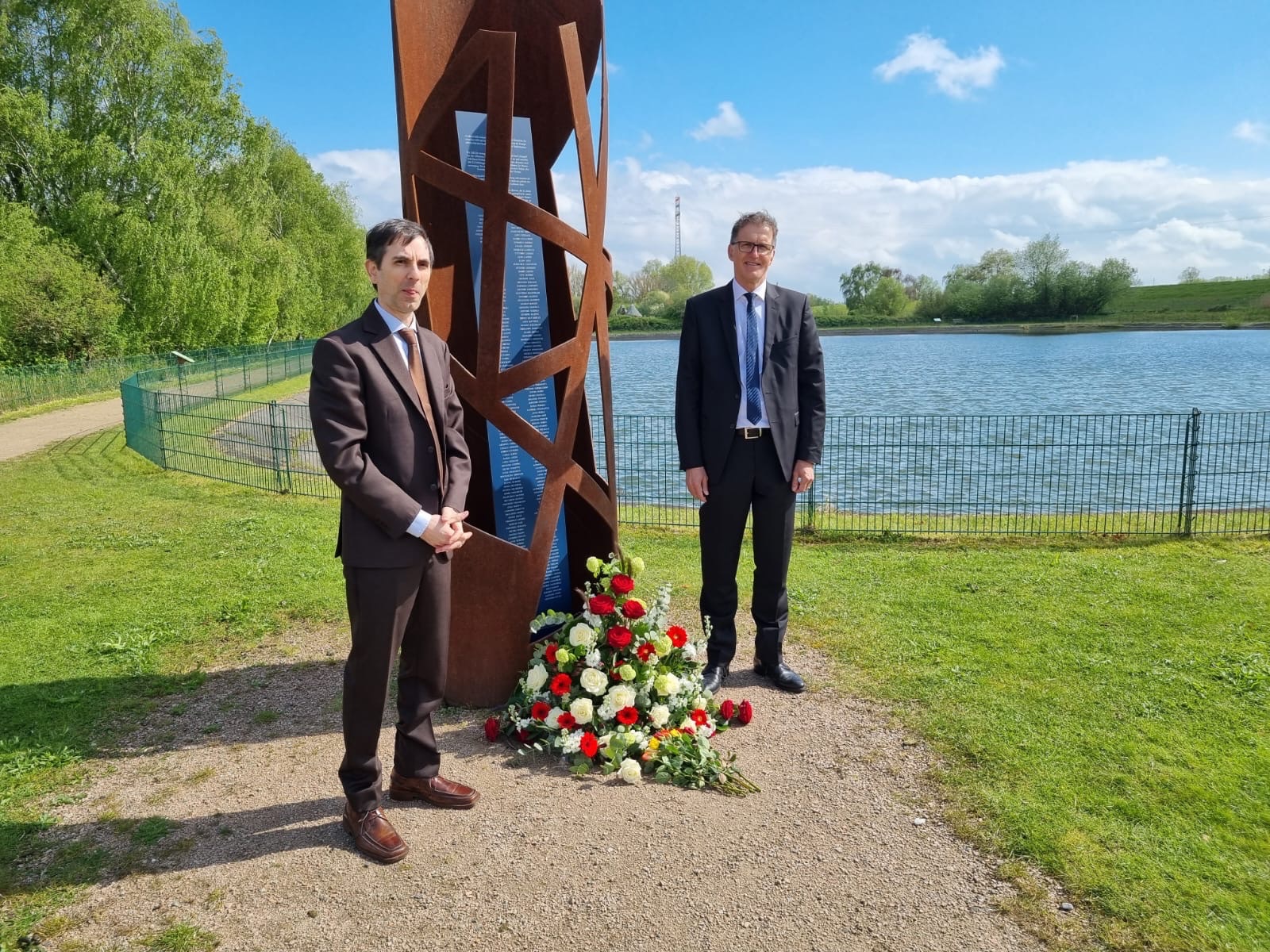 Nel pomeriggio, Hannemann e Michelut hanno deposto dei fiori al monumento al lavoro forzato nazista sull’isola dell’Elba, a Kaltehofe.