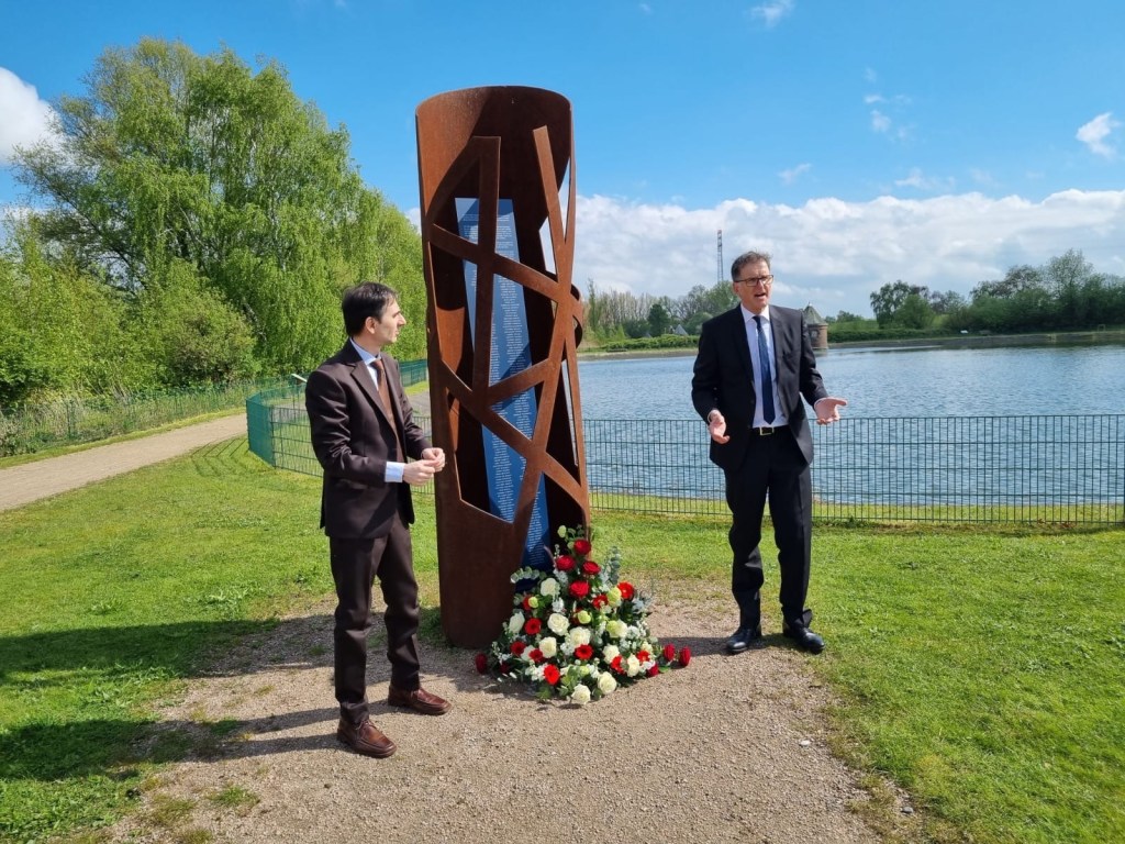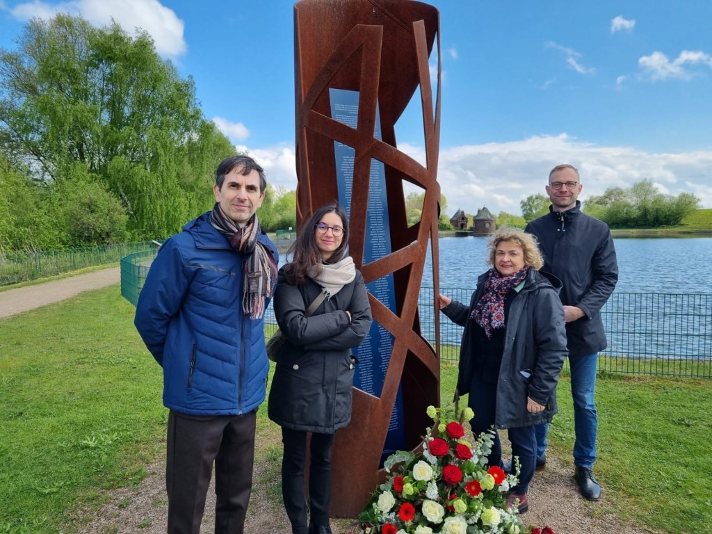 Am Nachmittag legten Hannemann und Michelut am Mahnmal der NS-Zwangsarbeit auf der Elbinsel Kaltehofe Blumen nieder.