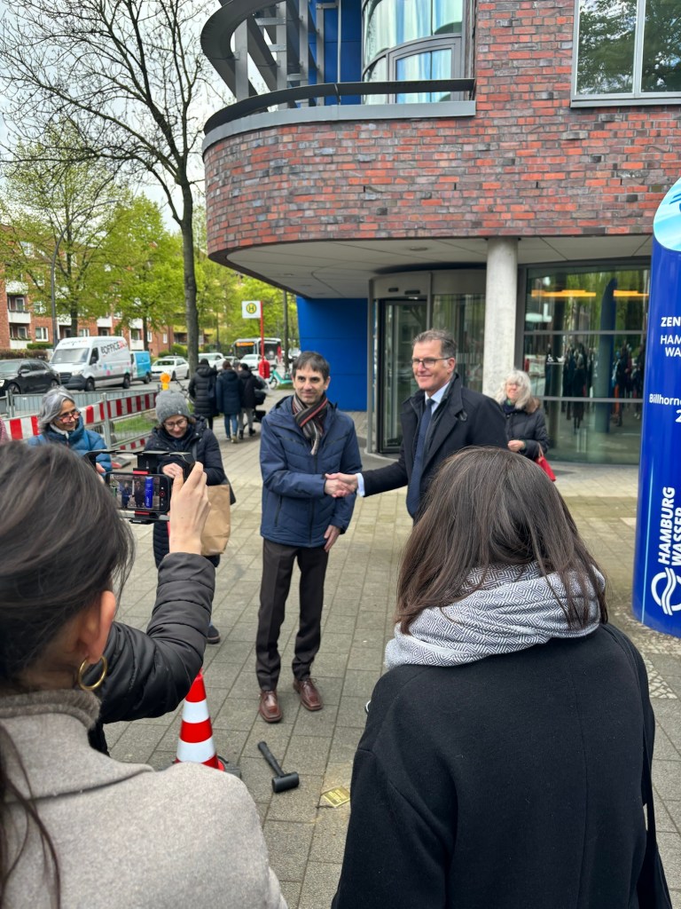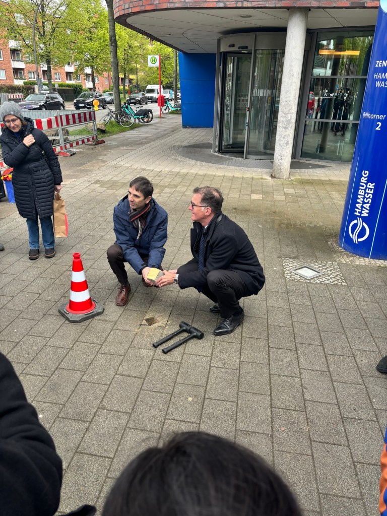 An der heutigen Verlegung des Stolpersteins für Italo Carlini vor Hamburg Wasser in Hamburg-Rothenburgsort haben 55 Personen teilgenommen. Der Geschäftsführer von Hamburg Wasser, Ingo Hannemann, und der italienische Generalkonsul, David Michelut, verlegten gemeinsam den Stein. Italo Carlini, ein italienischer Militärinternierten der Hamburger Wasserwerke, war am 20. März 1945 an der Stellen ums Leben geben.