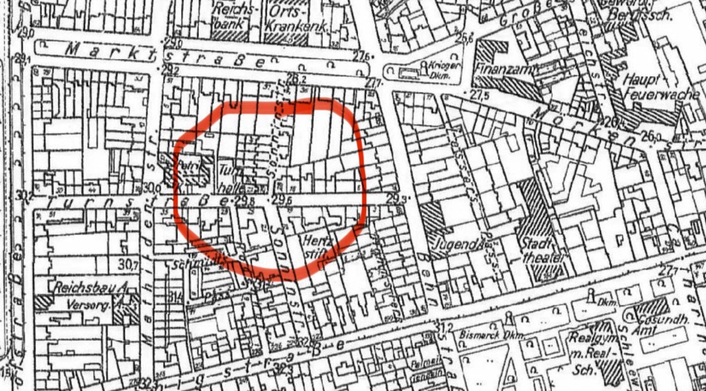Im Juli 1943 wurde die Turnhalle des ATV von Alliierten von Bomben zerstört, lediglich die Grundmauer blieb erhalten. Ab Mai 1944 wurde die Turnhalle notdürftig wieder hergerichtet, damit die Herren wieder turnen konnten. Eine Lösung für den ATV 1845 war das nicht. Die Halle an der Turnstraße wurde endgültig 1950 abgerissen. Sie wollten ihr Grundstück an der Turnstraße verkaufen, um aus den Erlöse etwas Neues zu entwickeln. Jetzt war es die Turnhalle am “Karl Möller Platz“ an der Jahnstraße 6, die ebenfalls zerstört war, aber nur in Teilen.