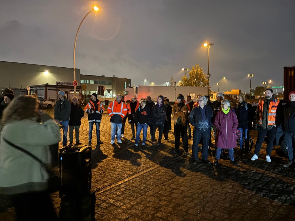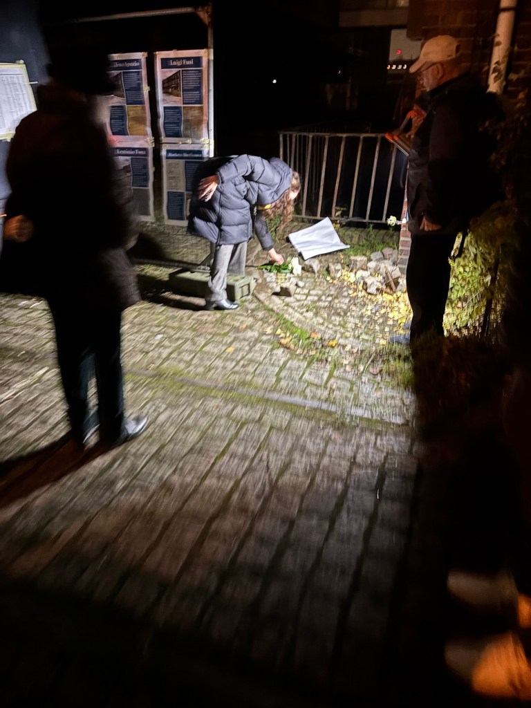 An der Erinnerungskundgebung am 12. November 2024 um 17 Uhr vor dem Lagerhaus G mit Beschäftigen aus dem Hafen und der Veddel haben 50 Personen teilgenommen. Die Idee zur Kundgebung war die öffentliche Übergabe der Stolpersteine für drei italienischen Militärinternierte mit Menschen aus dem Hafen und der Nachbarschaft.