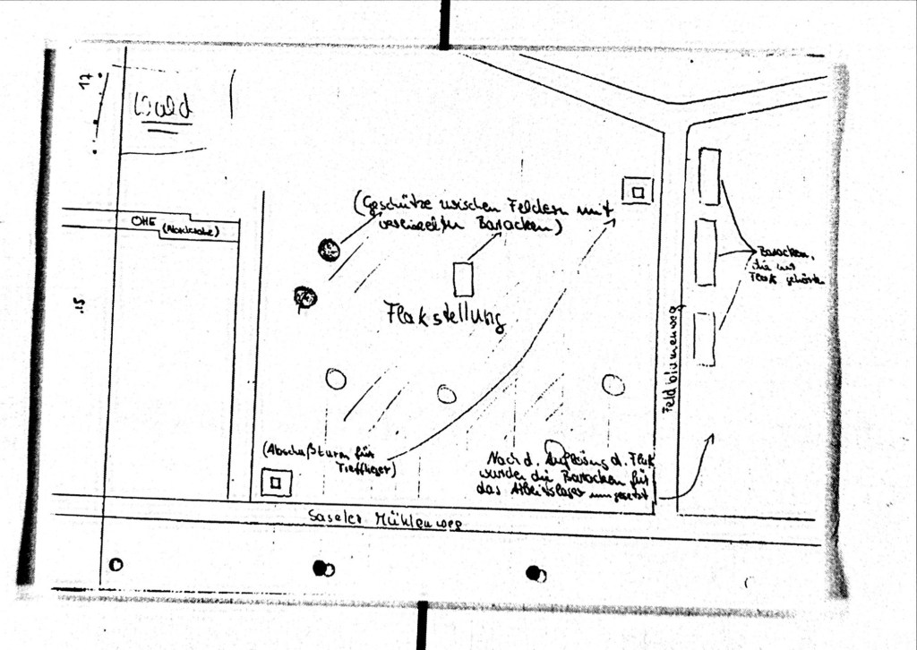 In unmittelbarer Nähe der später Baracken befand sich eine Flak-Stellung der Wehrmacht, u.a. mit einem Turm zur Abwehr von Tieffliegern.