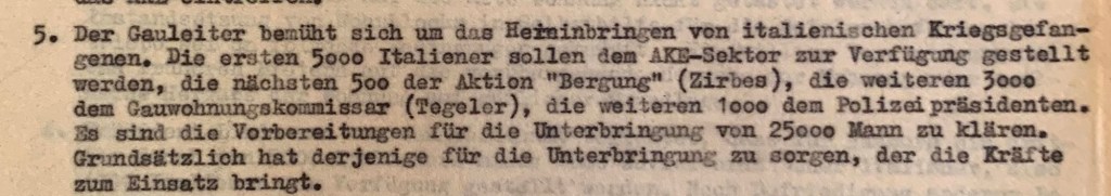 Il 14 settembre 1943, il leader della NSDAP di Amburgo Karl Kaufmann aveva promesso ai datori di lavoro amburghesi che 25.000 lavoratori forzati italiani sarebbero stati portati ad Amburgo per soddisfare le loro urgenti necessità di manodopera.