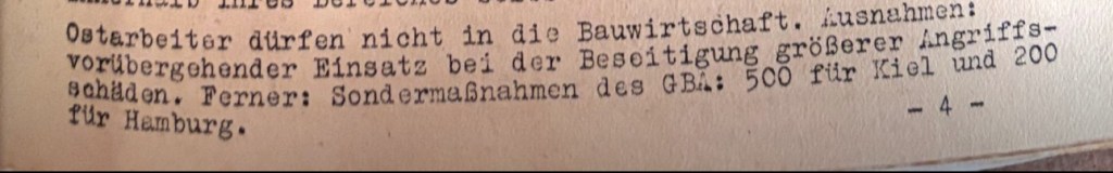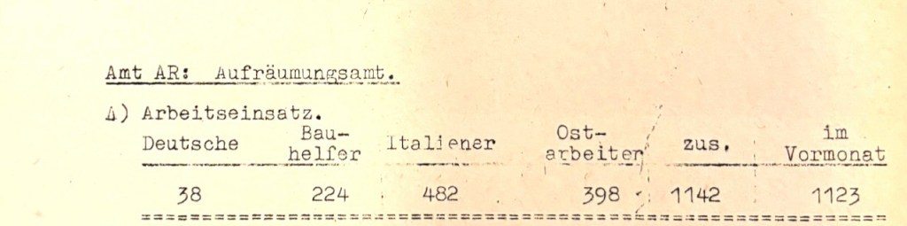 Aus den Berichten der Bauverwaltung ab Mai 1944 ergibt sich, dass auch bis zu 400 so genannte Ostarbeiter direkt vom Aufräumungsamt eingesetzt wurde.