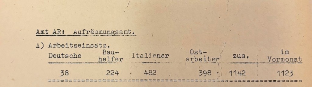 Bis zu 500 IMI waren später beim Aufräumungsamt eingesetzt. Dabei wurden die IMI den Baufirmen zugewiesen, die die Trümmerbeseitungsarbeiten durchführten.
