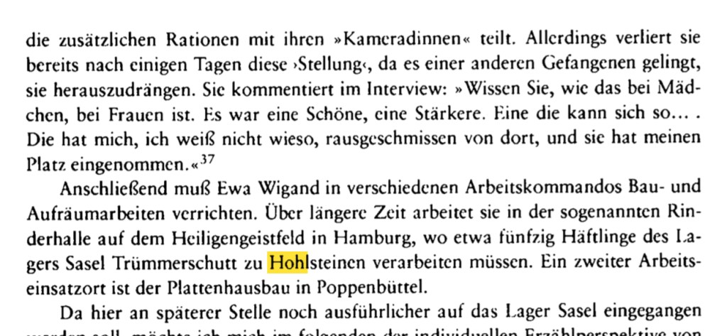 Auf dem Platz der Stadtreinigung/Aufräumungsamz in der Eimsbüttelerstraße 62 muss es auch eine Anlage zur Zertrümmerung von Steinen oder ähnlichem gegeben haben. Ewa Wigand war im Sommer 1944 als Jüdin von Auschwitz in KZ-Außenlager in Sasel verschleppt worden. Sie erinnerte sich, dass sie „über längere Zeit … in der sogenannten Rinderhalle auf dem Heiligengeistfeld in Hamburg, wo etwa fünfzig Häftlinge des Lagers Sasel Trümmerschutt zu Hohlsteinen verarbeiten müssen.“ Eine Anlage zur Steinzertrümmung gab es durch das KZ Neuengamme auch im Bullenhuser Damm. Dafür wurde ab Oktober 1944 ein KZ Außenlager in der Schule im Bullenhuser Damm errichtet, um die Menschen dort einzusetzen.