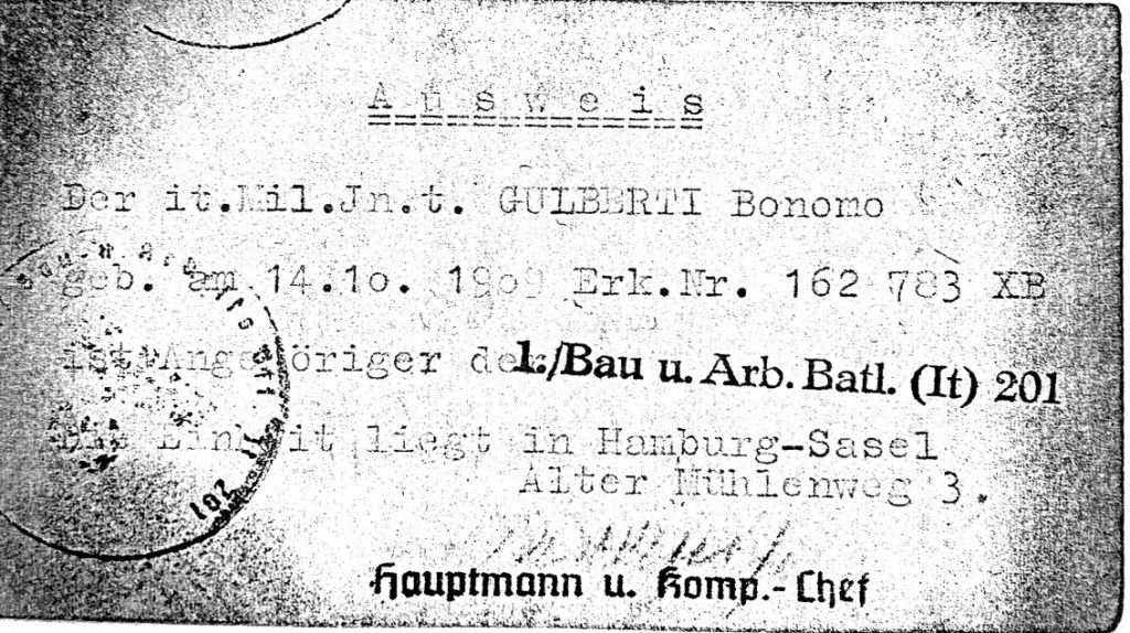 Es ist die erste Veranstaltung in Hamburg, die sich mit den Kriegsgefangenen italienischen Soldaten befasst, die in Hamburg als Zwangsarbeiter in einem BAB befasst. Bisher ist sehr wenig darüber bekannt. Warum das so ist, selbst das kann nicht seriös erzählt werden. Dank der Unterlagen von Bonomo Gulberti kennt man seinen ersten Aufenthaltsort in Hamburg, aus dem später das KZ Sasel wurde, weshalb er mit seiner Kompanie das Lager verlassen musste.