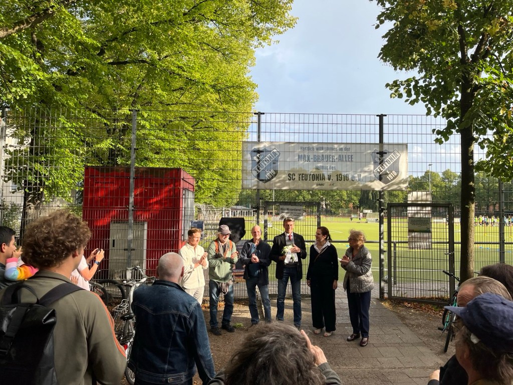 Lukas Wysocki, del consiglio direttivo della SC Teutonia, ha accolto con favore la targa commemorativa presso il loro campo sportivo e si è detto soddisfatto che ora ci sia un pezzo di storia del campo sportivo. Il club fu bandito dai nazisti fino al 1945.
