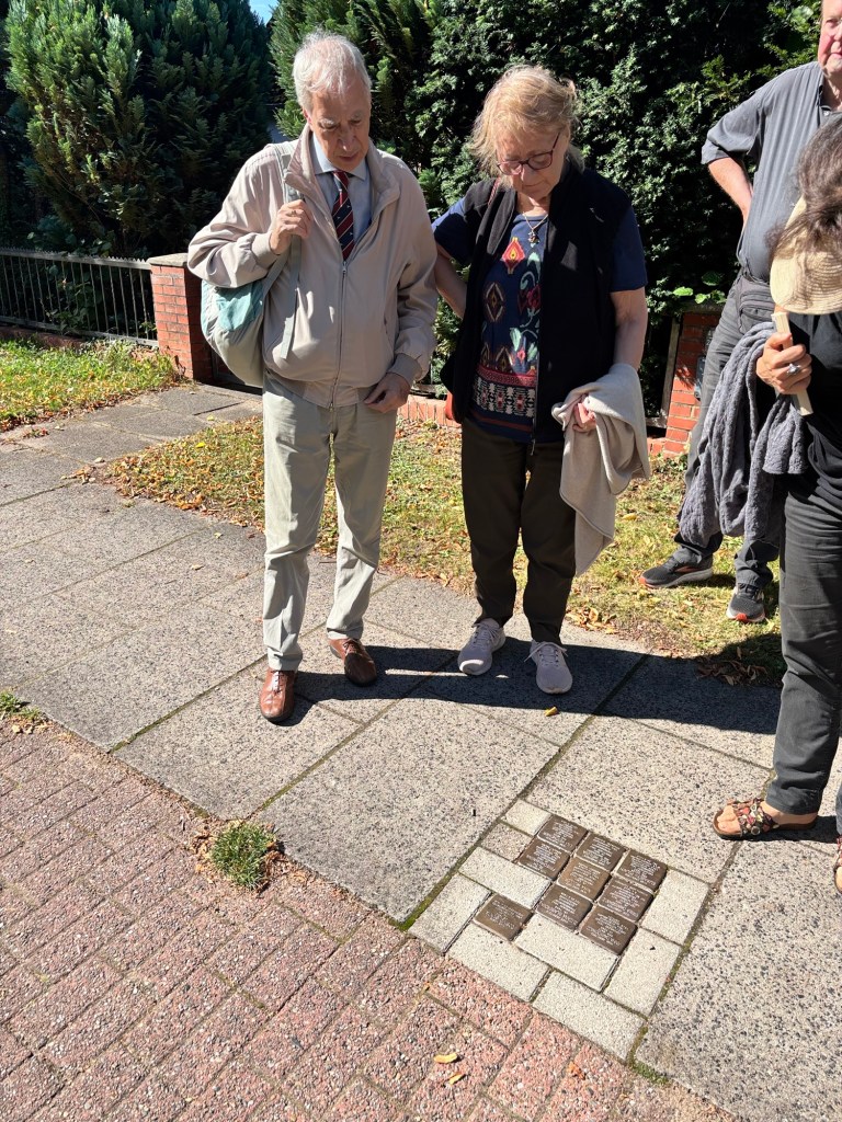 Er vermittelte ihnen einen Eindruck, wie heute vor Ort an die NS-Zeit und die Zwangsarbeiterlager erinnert wird, wozu die enge Kooperation mit den Schüler:innen des Gymasium Süderelbe und der Zivilgesellschaft gehört. Hier war seit 1940 ein Zwangsarbeiterlager, zu dem ab Ende 1943 eines für italienische Militärinternierte dazu kam. Ab September 1944 entstand dort das KZ Außenlager Falkenbergsweg für 500 jüdische Frauen.