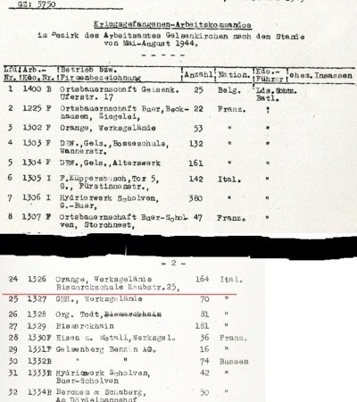 Opfer unter den italienischen Militärinternierten aus dem Zwangsarbeitslager von Aug. Prien